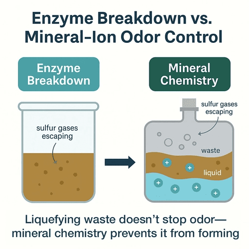 - Storage stability: Enzyme products lose power over time as the bacteria die off in the bottle. Mineral formulas stay stable for years, no problem.